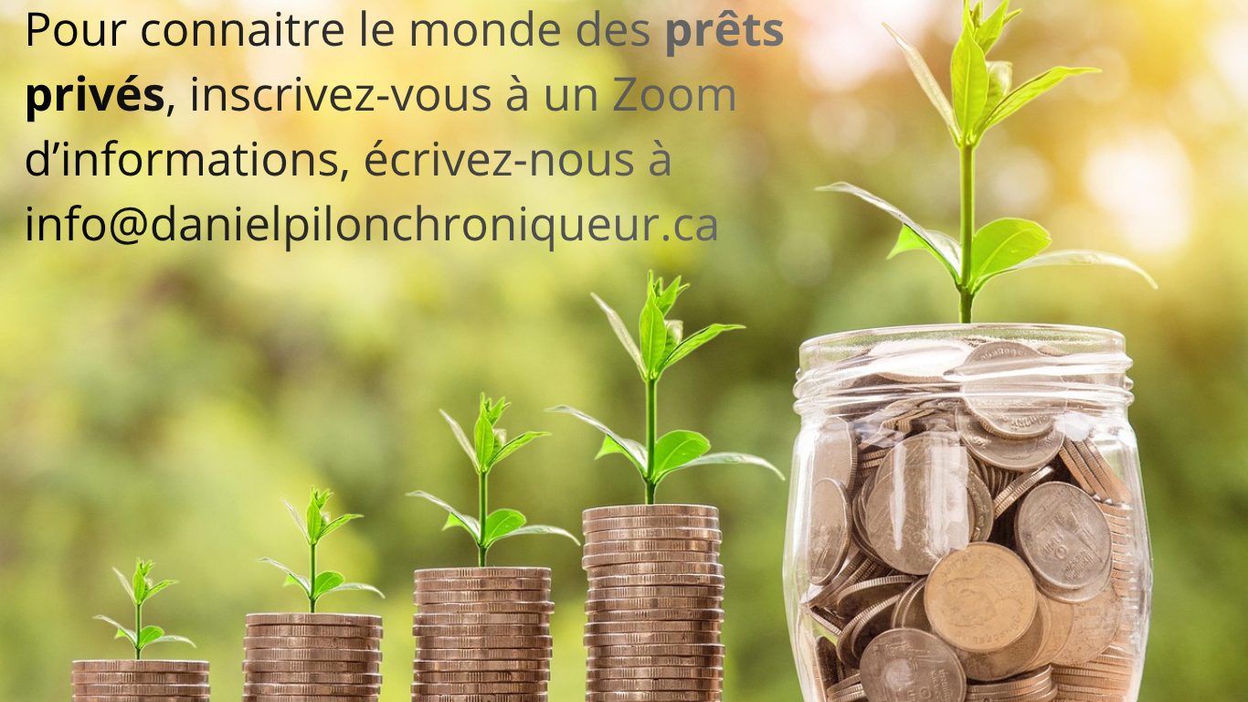 Vous connaissez l’univers des prêts privés ? Si vous voulez comprendre cette industrie, nous vous invitons à un zoom que nous faisons à l’occasion le lundi soir, durée : 1 heure. Simplement nous écrire avec le formulaire ci-bas nous allons vous contacter. Vous pouvez aussi me contacter directement par téléphone pour en savoir plus.